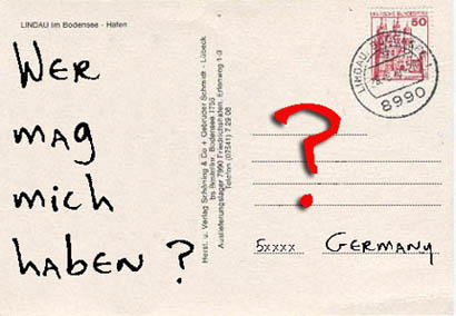 Jeder, der eine Postkarte haben möchte, sendet mir seine