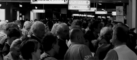 trotz steht vor mir eine Schlange, die mindestens 2 Fußballfelder lang